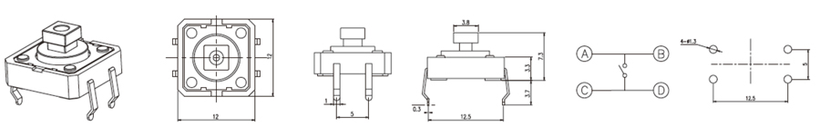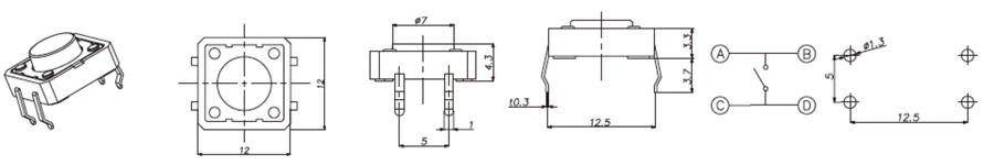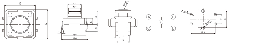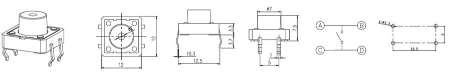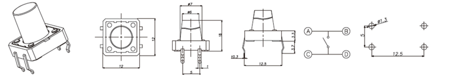 12.4X12.4mm輕觸開關(guān) | R2996 | 12VDC | 50mA | 4±1 N | 1.5±0.3mm | ≥100,000 CYCLES | 立即申請 | 下載 |