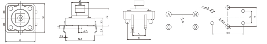 12.4X12.4mm輕觸開關(guān) | R2996 | 12VDC | 50mA | 4±1 N | 1.5±0.3mm | ≥100,000 CYCLES | 立即申請 | 下載 |