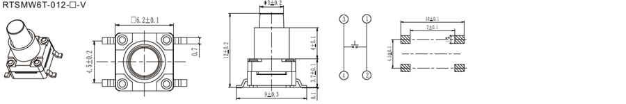 6.2*6.2mm輕觸開關(guān)RTS-6 6x6mm輕觸開關(guān) RTS-6 12VDC 50mA 2±1 N 0.3mm ≥100,000 CYCLES 立即申請 下載