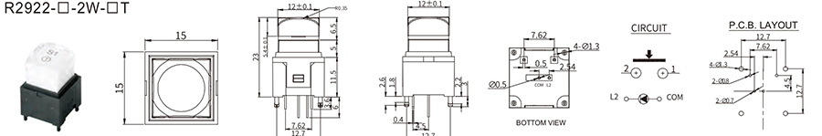 帶燈按鈕開關R2902A | R2902A | 30VDC | 10mA | 2±1 N | 1.2±0.3mm | ≥100,000 CYCLES | 立即申請 | 下載 |