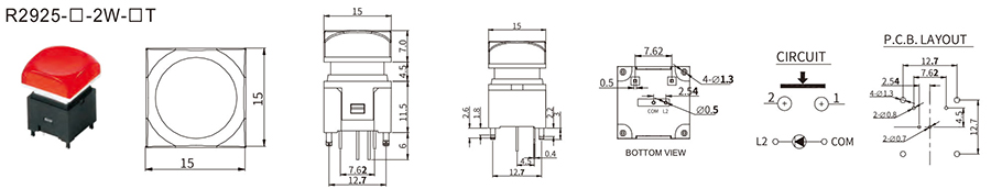 帶燈按鈕開關 | R2995 | 24VDC | 12mA | 2±1 N | 2.5±0.5mm | ≥100,000 CYCLES | 立即申請 | 下載 |