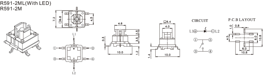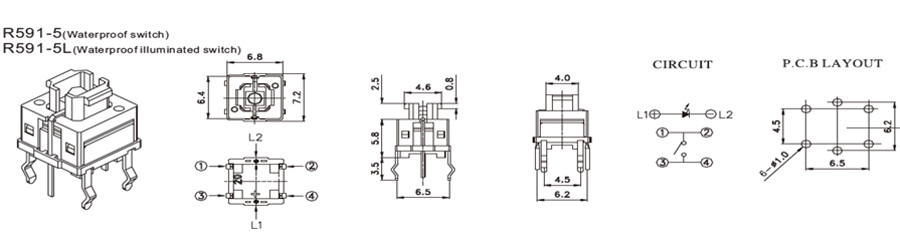 帶燈輕觸開關(guān)R591B 帶燈輕觸開關(guān) R591B 12VDC 50mA 2±1 N 0.25±0.1mm ≥100,000 CYCLES 立即申請(qǐng) 下載