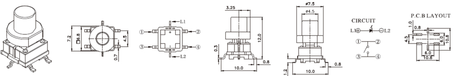 帶燈輕觸開關 | R509K | 35VDC | 10mA | 2±1 N | 1.0mm | ≥100,000 CYCLES | 立即申請 | 下載 |