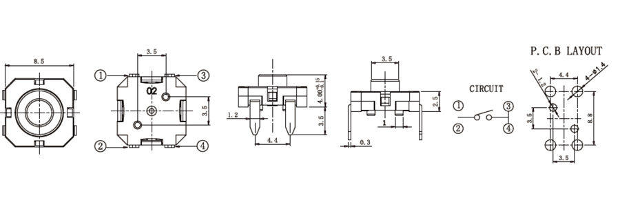 輕觸開關(guān) | RTR-85 | 12VDC | 50mA | 4±1 N | 0.8±0.2mm | ≥100,000 CYCLES | 立即申請 | 下載 |
